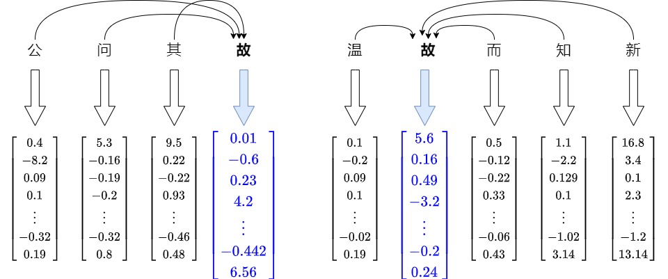 • 增维,从单维变成多维,进而承载更多信息。此处的增维指的是用更多的维度来表示语义信息。