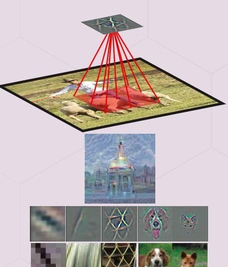 神经元识别的团可以被进行可视化,其方法是:1)优化其输入区,将神经元的激活(deepdream)最大化;2)将梯度(gradient)可视化或者在其输入像素中,引导神经元激活的梯度(反向传播以及经引导的反向传播)3)将训练数据集中,激活神经元最多的图像区域进行可视化。