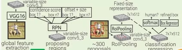 这是一个包含了所有步骤的物体识别管道(预处理、区域建议生成、建议分类、后处理),可以通过优化单个对象函数来进行整体训练。单个对象函数是一个可差分的函数,包含了所有的处理步骤的变量。这种端到端的管道与传统的物体识别管道的完全相反。在这些系统中,我们还不知道某个步骤的变量是如何影响整体的性能的,所以,么一个步骤都必须要独立的训练,或者进行启发式编程。