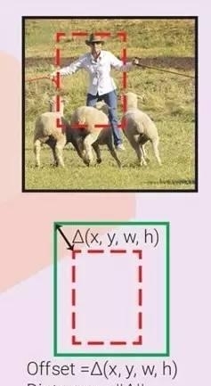 观察一个输入区域,我们可以得到一个更适合隐含对象的边界框,即使该对象仅部分可见。下图显示了在只看到一部分对象时,得出真实边界框(groundtruthbox)的可能性。因此,可以训练回归量,来观察输入区域,并预测输入区域框和真实框之间的offset△(x,y,w,h)。如果每个对象类别都有一个回归量,就称为特定类别回归量,否则就称为不可知类别(class-agnostic,一个回归量用于所有类别)。边界框回归量经常伴有边界框分类器(信度评分者),来评估边界框中在对象存在的可信度。分类器既可以是特定类别的,也可以是不可知类别的。如果不定义首要框,输入区域框就扮演首要框的角色。