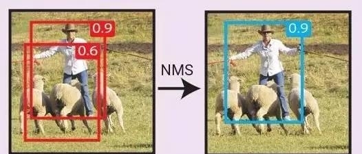 一个融合重叠边界框(提交或侦测出的)的一般性算法。所有明显和高信度边界框重叠的边界框(IoU>IoU_threshold)都会被抑制(去除)。