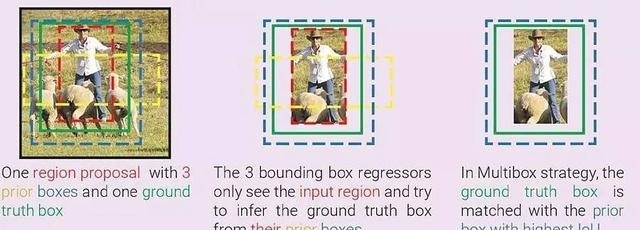 如果不使用输入区域作为唯一首要框,我们可以训练多个边界框回归量,每一个观测相同的输入区域,但它们各自的首要框不同。每一个回归量学习预测自己的首要框和真实框之间的offset。这样,带有不同首要框的回归量可以学习预测带有不同特性(宽高比,尺寸,位置)的边界框。相对于输入区域,首要框可以被预先定义,或者通过群集学习。适当的框匹配策略对于使训练收敛是至关重要的。