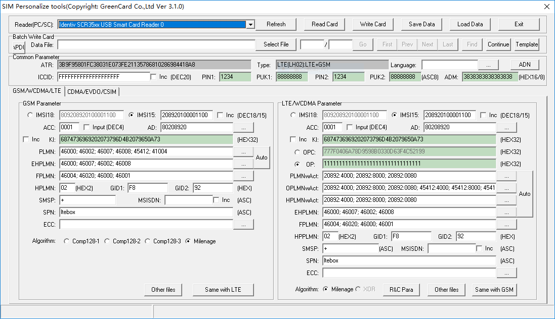 $ cd ~/srsLTE/lteCell # 修改MNC,MCC $ sed -i -r "s/^mnc[ \t]*=[ \t0-9]*/mnc = 92/g" lteENB/enb.conf $ sed -i -r "s/^mcc[ \t]*=[ \t0-9]*/mcc = 208/g" lteENB/enb.conf $ sed -i -r "s/^tac[ \t]*=[ \t]*0x[0-9]*/tac = 0x0001/g" lteENB/enb.conf $ sed -i -r "s/^mnc[ \t]*=[ \t0-9]*/mnc = 92/g" lteEPC/epc.conf $ sed -i -r "s/^mcc[ \t]*=[ \t0-9]*/mcc = 208/g" lteEPC/epc.conf $ sed -i -r "s/^tac[ \t]*=[ \t]*0x[0-9]*/tac = 0x0001/g" lteEPC/epc.conf # 修改认证加密算法 $ sed -i -r "s/^auth_algo[ \t]*=[ \ta-Z]*/auth_algo = milenage/g" lteEPC/epc.conf # 需要软件示波器界面的话,修改 lteEPC/epc.conf 里面的 [gui]部分的enable = true # 但是打开示波器会导致CPU开销加大,降低实时性,稳定性变低 # 认证数据库中增加Name,IMSI,Key,OP,AMF,SQN 这里主要的就是IMSI,Key,OP这几个参数 # OPc=AES128(Ki,OP) XOR OP 因此需要反算 OP # openair-cn需要OPc,而 srsLTE 的epc需要 OP 这是两者的主要区别 # OPc = 504f20634f6320504f50206363500a4f # Ki = 6874736969202073796d4b2079650a73 # OP = 11111111111111111111111111111111 # 最后的 SQN 目前测试发现如果一直不能正常注册,并且提示 # "Sequence number synch failure" 则会观察到,当EPC退出时候,应用一定回写 # 成000000001b02 ,一旦出现这个数字,我们就没办法注册设备了。应该是个BUG # http://www.mobibrw.com/?p=12688 中我们持续跟进这个问题,目前猜测是要比设备最后 # 一次通信记录的数据号大就可以了,如果要复位可以让设备关机,应该就从0开始了。 $ sed -i '$a\ue3,208920100001100,6874736969202073796d4b2079650a73,11111111111111111111111111111111,8000,000000001b03' lteEPC/user_db.csv |