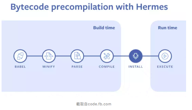 Hermes 引擎使用了 aot 编译的方式,将解释和编译过程前置到编译阶段,运行时只完成机器码的执行,大大提高了运行效率。
