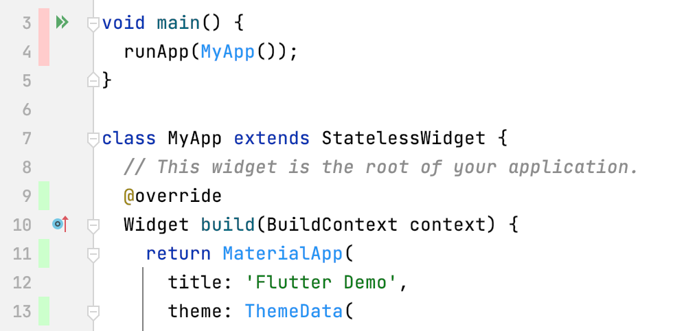 $ flutter create -t skeleton my_app
