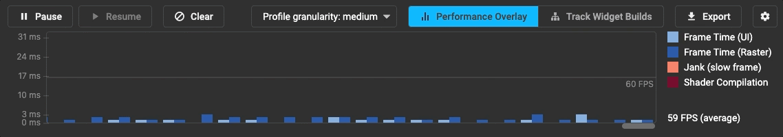 有了这个新功能,DevTools 可以检测到你因着色器编译而丢失的构建帧,以帮助你修复这个问题。如果你希望像首次运行应用一样,使用 flutter run 命令并加上 --purge-persistent-cache 这个标记。这将清除着色器的缓存,以确保你重现用户在「首次运行」或「重新打开」 (iOS) 应用时看到的效果。此功能仍在开发中,所以请将您发现的 问题或改进建议 提交给我们,以帮助发现和改进着色器编译工具。