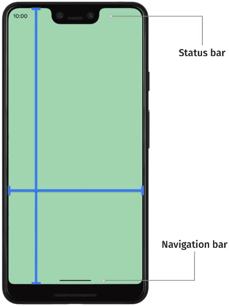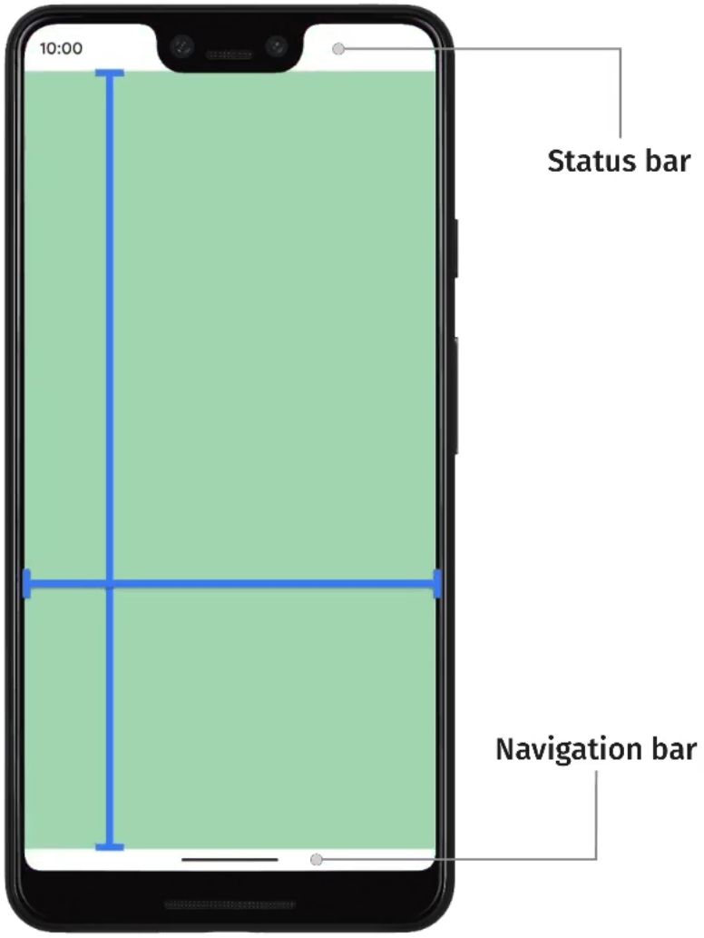 而edge-to-edge全面屏体验就是要将所有的空间都利用起来,如下图所示。