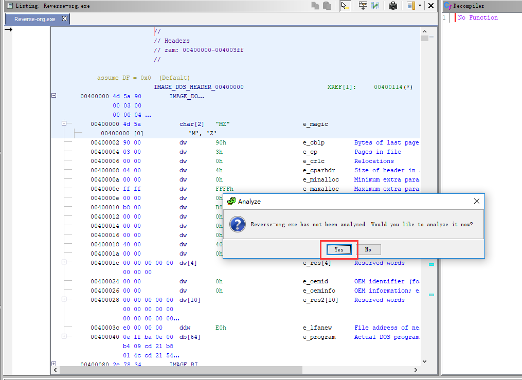 双击对应的文件即可开始分析该文件,下面以Reverse-org.exe为例,双击后选择分析