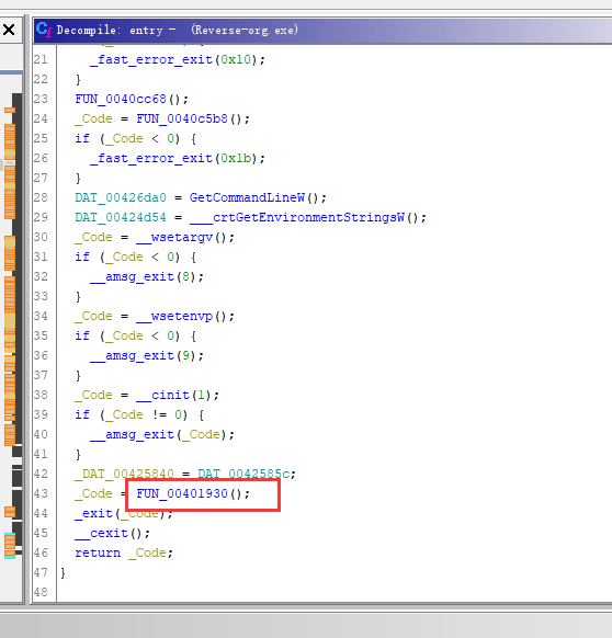 查看反编译,对逆向熟悉的就知道下面这个就是main函数了