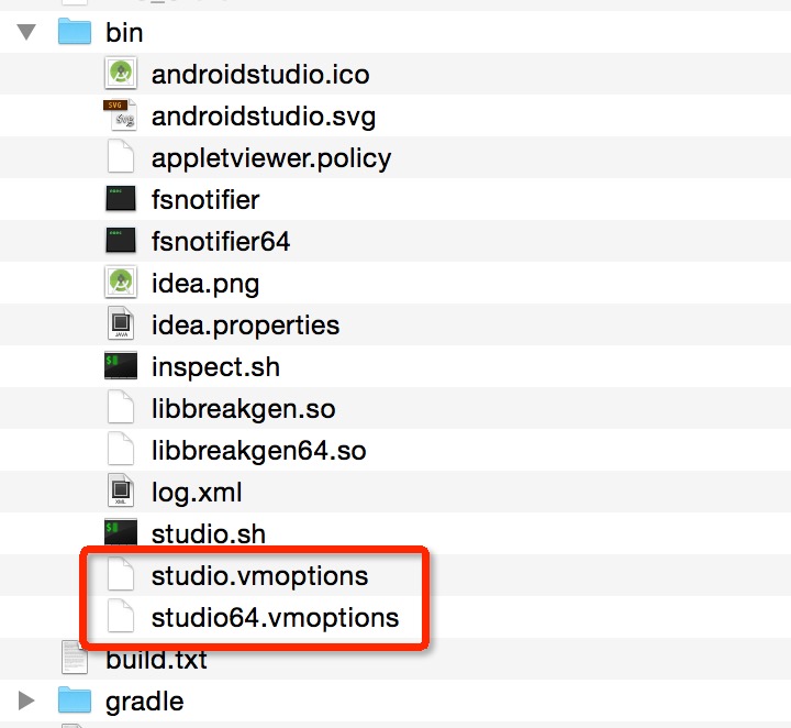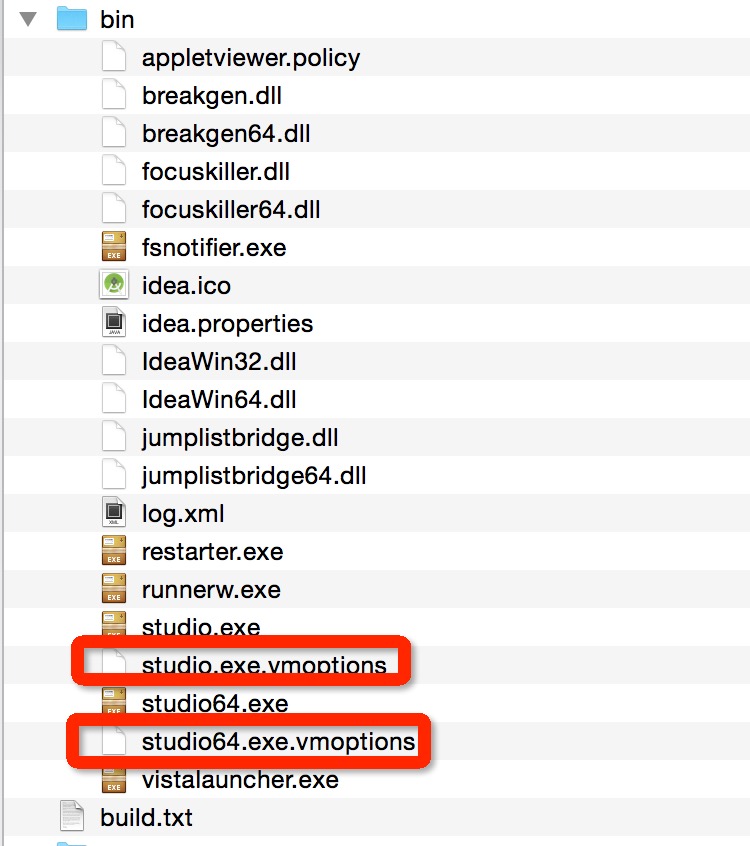 找到 bin/ 目录下的 studio.vmoptions (32位系统) 或者 studio64.vmoptions (64位系统)文件